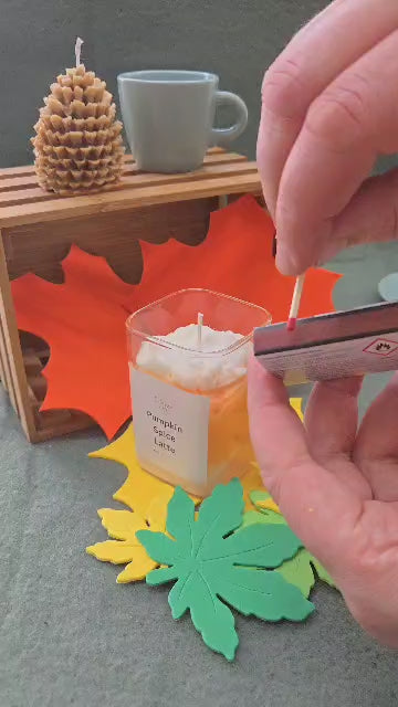Handgegossene Getränkekerze im Pumpkin-Spice-Latte-Look